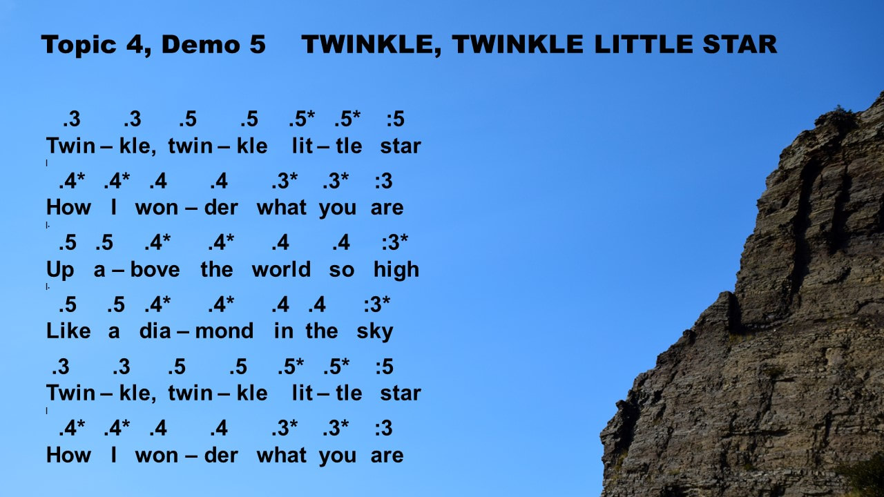 Topics 1 to 5 at left include demonstrations & practice using the five familiar and four "some-what" familiar song-melodies that were included in the previous Unit.